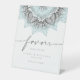 Un patrón de mandala de encaje en un gradiente de azul de huevo de ladin suave y gris cálido junto con el fluido texto del guión le dan a esta elegante suite nupcial su atractivo lujoso. El boda 'favorece' el signo de pedestal que se muestra aquí le permite editar fácilmente sus nombres, fecha de boda y mensaje de agradecimiento usando la plantilla proporcionada. Busque ID968 para ver todas las piezas coincidentes en este hermoso conjunto de bodas.