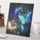Fabuloso, brillante, azul y amarillo, mariposa nocturna sobre fondo oscuro.