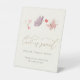 Cartel de la ducha de novia que muestra "El amor es dulce" en moda de purpurina de oro falso; perfecto para tu mesa de dulces y dulces. El suave fondo beige está adornado con mariposas acuarelas y corazones en la parte superior, lo que añade un toque de romanticismo a tu exposición de postres.