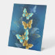 Composición de vuelo, joyería, oro y mariposas oscuras sobre fondo de joyería texturada. Mariposa dorada.