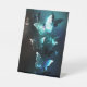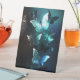 Mariposas brillantes nocturnas de menta sobre fondo abstracto negro.