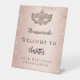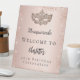 Un cartel de bienvenida para una fiesta de cumpleaños número 40 (o de cualquier edad) glamurosa y femenina. Fondo subió de gradiente dorado. Decorada con finos destellos purpurinas y una máscara de máscaras. Personalice y agregue un nombre.