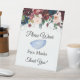 "¡Por favor, use máscaras faciales gracias!" texto con una imagen acuarela de máscara azul de la cara, y una cabecera superior floral rosa rosa rosa rosa, borgoñona y rubia.