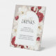 Un elegante cartel de menú peatonal con rosas rojas rubíes y flores blancas suaves, perfecto para añadir un toque romántico a tu estación de bebidas con un estilo atemporal.