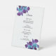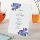 Signo de peatón del menú boda de orquídeas Dendrobium azul violeta y turquesa. Diseño sencillo de menú boda que presenta una hermosa variedad de orquídeas llamada dendrobio azul. Es de color verde azulado/turquesa y violeta y púrpura real. Una gran variedad de flores para el color boda pavo real.