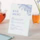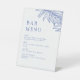 Algo de Blue Simple Botanical Bar Menú Rótulo Pedestal Este elegante cartel peatonal presenta un diseño botánico sencillo, perfecto para mostrar el menú de su bar en bodas o eventos especiales. Los suaves tonos azules y los delicados acentos florales crean un ambiente encantador y acogedor, lo que facilita a los clientes ver las opciones de bebidas. Diseñado para la durabilidad y el estilo, este letrero mejorará su decoración y proporcionará información esencial de una manera visualmente atractiva. Ideal para cualquier celebración, añade un toque de sofisticación a su servicio de bebidas.