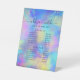 Rótulo Pedestal Holográfico Sparkle Opal Iribow Price Menu. Perfecto para un salón de belleza, peluquería, maquillador o cosmetólogo.