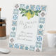 Añada un toque de estilo mediterráneo a su próximo brunch o celebración con nuestro encantador cartel de bar mimosa. Este letrero, de excelente factura, presenta un impresionante diseño azul y amarillo, inspirado en los vivos tonos del Mediterráneo. El fondo está adornado con delicados limones acuáticos y bordeado de baldosas amalfitanas, lo que aporta un toque de frescura y frescura a la decoración. Capturando perfectamente el espíritu de una reunión festiva, el cartel invita a los invitados con instrucciones lúdicas: "Pour Some Bubbly, Splash Some Juice, Garnish with Fruit." Ya sea que esté hospedando una ducha de novia, un brunch dominical o una reunión familiar especial, este cartel es la pieza central perfecta para su bar mimosa, combinando funcionalidad con estilo artístico para realzar el ambiente de su evento.