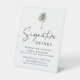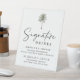Bring tropical style to your wedding bar with this signature drinks pedestal sign featuring a single watercolor palm tree illustration at the top. “Signature Drinks” is displayed in a modern handwritten script paired with classic serif lettering for a timeless island-inspired look. Designed for tabletop or bar display, this pedestal wedding sign is easy to customize with your names and drink selections — a perfect finishing touch for your tropical, destination, or summer wedding reception.