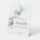 Celebrate your impending nuptials in style with our beautiful greenery eucalyptus Bridal Shower Pedestal Sign. A must-have for any bridal shower or engagement party, this gorgeous pedestal sign adds a touch of class to your celebration. Showcasing a sophisticated white background adorned with eucalyptus foliage, our sign will certainly bring a romantic, chic aesthetic to your special event.
