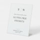 Este elegante y moderno cartel de boda presenta un sencillo diseño de texto en blanco y negro que rebosa de estilo minimalista. Añada sus iniciales o monograma para que sea completamente propio. El cartel permite a los clientes con alergias a alimentos saber que la mesa incluye postres sin gluten u otros artículos. La forma perfecta de acoger y alojar a sus huéspedes con enfermedades celíacas, alergia al trigo o intolerancia al gluten.