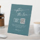 Esta moda de boho captura azul verde azulado el signo del boda de amor es perfecto para un boda minimalista. El audaz tono de joyería turquesa oscuro presenta un diseño bohemio moderno con una caligrafía rústica sencilla, con un estilo único y clásico. Introduzca su dirección web en la sección de código QR de la plantilla y el código QR se actualizará automáticamente y se vinculará a su sitio.