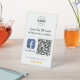 Elevate your business counter with this sleek, professional design focused on boosting your online reputation. The front features a clean, minimalist layout with a prominent Facebook icon and a scannable QR code to make customer feedback effortless. Perfect for boutiques, salons, or cafes, this template includes a logo placeholder and gold star accents to reinforce your brand's credibility. Help your customers share their experiences instantly with this modern and functional marketing tool.
