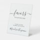 ¡Favor! Simple pero elegante caligrafía, este signo de favor de boda presenta caligrafía elegante, y gracias por celebrarnos. Personalizar este elegante signo de boda con sus nombres! DERECHOS RESERVADOS © 2020 Judy Burrows, Black Dog Art - Todos los derechos reservados. Boda Moderna Elegante Personalizada Favorece El Rótulo Pedestal De Mesa