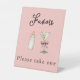 Martini de fondo rosado Favores de Baby Shower Por favor tome un Rótulo - Una simple ducha de color de agua favorece la señal de una ducha de bebé chica. Con caligrafía de guión y letra de bloque elegante. Un ilustracion acuático de un martini sucio con dos aceitunas y un arco de coqueta rosada y un ilustracion acuarela de una botella de bebé adornan el centro. Edite esta plantilla de señalización de la ducha de bebé con sus propios detalles de evento. Todo el texto es editable.