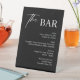 Eleva tu bar boda con nuestro Rótulo Pedestal Bar Boda Negro Moderno. Perfecto para aquellos que buscan ideas de bar boda, este cartel de bar boda le da un toque de sofisticación a su decoración de bar boda. Con un diseño elegante y totalmente negro, se integra perfectamente en un tema boda negro o en un tema boda blanco y negro, ofreciendo un toque clásico y moderno. Ideal para mostrar tu menú de bar boda, se complementa con bodas oscuros y amorosos y bodas románticos oscuros. Ya sea que esté planeando un boda clásico, un boda atemporal o una boda clásica y elegante, este elegante letrero de bar boda realza la estética del boda blanco negro.