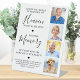 Honre a sus seres queridos en su día de boda con un cartel conmemorativo personalizado. Este moderno boda conmemorativo es la mesa perfecta o guarda un cartel para rendir homenaje a sus seres queridos. Cita " Sé que estarías aquí hoy si el cielo no estuviera tan lejos... En la memoria amorosa. " Esperamos que su placa boda conmemorativa le traiga paz, alegría y recuerdos felices. Personalizar con las fotos y nombres favoritos de 4 seres queridos. Maravilloso tributo a abuelos, tías tíos, hermanas y puedes incluir a mascotas de familia o a un perro amado. Una celebración de la vida . DERECHOS RESERVADOS © 2020 Judy Burrows, Black Dog Art - Todos los derechos reservados. Personalizado 4 Collage de fotos Boda celestial Rótulo Pedestal conmemorativo