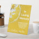 El Rótulo Moderno Italiano Boda Memorial Pedestal es un hermoso homenaje que combina a la perfección la elegancia y el recuerdo más sincero. Este impresionante cartel cuenta con un bonito conjunto de flores de plumeria contra una vibrante loncha de limón en la esquina superior izquierda, que le da un toque de encanto tropical a su ocasión especial. El fondo amarillo cálido no sólo alegra el espacio, sino que también crea un ambiente acogedor para los clientes. Este cartel, que forma parte de su decoración boda, honra a los que no están presentes pero que siempre están en su corazón.