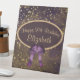 El diseño de cumpleaños de bonito y glam presenta el fondo de un cielo celeste morado oscuro con estrellas doradas y polvo de estrellas y oval de texto con arco morado oscuro. Personalizable de texto en letra de guión dorado