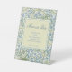 NewParkLane - Brunch Bridal elegante e intemporal / Rótulo Pedestal Fiesta Mimosa Bar, con un lindo y vintage patrón floral de flores azules, hojas de acanto y flores blanquecinas del artista británico William Morris (1834-1896), con un suave marco amarillo pastel para todos sus textos / información. El artista prerapelita William Morris es más conocido por su influencia en el movimiento de Artes y Artesanías y su diseño de papel pintado. Los textos son de elegante tigrafía clásica en diferentes tonalidades de azul. Fácil de personalizar en Zazzle con su propio texto para un diseño personalizado, de manera que el signo puede fácilmente ser alterado f.i. en un aviso a la novia, o un signo de fotobatón. Se pueden modificar todos los estilos, colores y tamaños de texto para adaptarlos a sus necesidades, así como el tamaño y los colores de los marcos. Para obtener más productos con esta sofisticada decoración boda (primavera), consulte esta colección para ver si hay productos a juego.