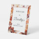 Las elegantes flores de color naranja de terracota crean un audaz marco floral en este cartel de bienvenida de fiesta de cumpleaños floral de otoño. Un guión elegante le da una visión clásica.
