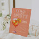 Celebra la futura novia con estos modernos y elegantes carteles peatonales. Este naranja de paz "ama al primer spritz" perol spritz símbolo de pedestal es personalizable con tus propios detalles.