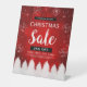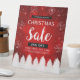 Navidades De Bokeh Rojos Venta Al Por Menor Publicidad Rótulo Pedestal Con Árboles de Invierno Y Copos De Nieve. Personalizar A Tu Gusto.
