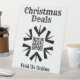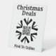 Rótulo de código QR para navidades. El mensaje dice "Encuéntrenos en línea". La imagen es un copo de nieve con código QR. Acuerdos de navidades.