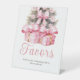 Navidades rosados Gift(s) Baby Shower - perfecto para chicas gemelos! con un bonito árbol de Navidad y dos regalos adornados con flores y arcos rosados.