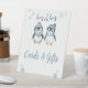 boy oh boy invierno bebé duchas mellizos tema con dos pingüinos adorables en gorras y bufandas de invierno azules, copos de nieve y nieve