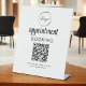 Realizar citas programáticas sin problemas con este Rótulo comercial de códigos QR de reserva de citas. Muestra tu código QR personalizado, lo que permite a los clientes escanear y acceder al instante a tu plataforma de reservas online. Este elegante y moderno cartel es perfecto para recepciones, zonas de espera o cabinas de eventos, lo que permite a los clientes reservar servicios en el lugar. Diseñado para comodidad y profesionalidad, eleva su negocio al agilizar el proceso de reserva y mejorar la experiencia del cliente. Ideal para salones, clínicas o cualquier negocio basado en servicios.