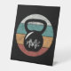 Nombre del monograma del personalizado del timbre de color vintage inicial con múltiples colores a rayas de color gris, turquesa, naranja y rojo sobre un fondo negro. Perfecto para todo aquel que levante, haga ejercicio físico, entrenando, construyendo el cuerpo e ir al gimnasio.