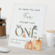 Nuestra pequeña calabaza fiesta de primer cumpleaños favorece la señal de peatón. Los animales de las selvas acuáticas rodean un "uno" limpio y audaz con detalles de calabaza acuarela. Naranja suave y colores verdes. La fiesta más agradable favorece el cartel de peatón para regalos para el invitado que asiste a la fiesta de primer cumpleaños de su bebé. La decoración de fiestas es un lugar cohesivo y divertido. Este pequeño cartel de calabaza es parte de la "colección de cumpleaños de nuestros animales de la calabaza" en la tienda de diseños de reunión.