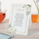 Cualquier evento (boda, aniversario de boda, baby shower, exposición nupcial, shower de novia) Número de mesa Gráfico de asientos Señal de pedestal. Este diseño presenta hermosas rosas blancas con follaje verde en estilo acuarela. En la parte superior: confeti con efecto dorado y verdoso. Puede cambiar el número de mesa según sus necesidades (2, 5...7...10...) - cada vez una nueva tarjeta, y agregar todas esas tarjetas a su carrito.