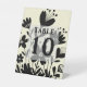 Este es un encantador y audaz número de mesa Boda con un grupo de flores extravagantes. La imagen, que se presenta en negro sólido contra un suave y limpio tono de fondo amarillo, tiene un atractivo sorprendente y de alto contraste. Las flores están muy estilizadas con una diversa variedad de formas y tamaños: algunas tienen pétalos redondeados simples, otras más tibias. Muchas presentan estambres largos y prominentes con pequeños puntos en la punta, añadiendo su carácter fantasioso. La composición incluye diferentes formas florales, desde formas clásicas como la margarita hasta una flor puntiaguda de semilla única a la derecha. Las flores, sus simples tallos y sus hojas, provienen de un solo trozo de tierra, creando la sensación de un pequeño jardín encantado. El conjunto es moderno, limpio y alegre.