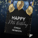 Elegantes globos purpurinas en azul y oro en la frontera superior. Todo el texto es ajustable y fácil de cambiar para sus propias necesidades fiestas. En cualquier año, la edad puede cambiarse