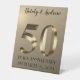 Feliz aniversario de boda dorado. 50 años juntos. Etiqueta metálica dorada.