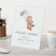 Un oso dulce con tres globos marrones, ideal para el fiesta de picnic de tu oso de peluche. Los globos son de tonalidad neutra, pero también se puede cambiar el color de cada uno si se prefiere. También puede cambiar las letras "ONE" o eliminarlas.