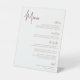 Muestra tus selecciones de menú de boda o evento en un estilo moderno con este sencillo y elegante cartel de peatón con letras de terracota de tono de tierra sobre un fondo blanco y fresco. "Menú" o la cabecera de su personalizado aparece en la parte superior en la escritura manuscrita moderna. Personalice los elementos de menú que se encuentran debajo, alineados a la derecha.