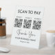 Simple señal de peatón de mesa para tu negocio con 3 o tus códigos QR vinculados a aplicaciones de pago para que los clientes puedan buscar pagos móviles sin contacto.