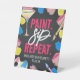 ¡Es hora de pintar y aflojar! Dale a tu bridal un poco para que recuerde su diversión pintando y sorbiendo a su fiesta con un cartel de bienvenida de fiesta de pintura y sorbo. Simplemente personalizar con el nombre de la novia y la fecha del fiesta para un toque personal divertido. El diseño presenta tipografía "repetición del sorbo de pintura", así como salpicaduras de pintura con salpicaduras de pintura amarillas, rojas y azules, paleta de pintura pintada a mano, pincel de pintura y vidrio con fondo de pizarra.
