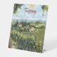 Este ilustracion vibrante captura la esencia de la Toscana con un uso lúdico del color y la textura. Las colinas onduladas se representan en un estilo atrevido y expresivo, mientras que los viñedos se representan con un detalle inconfundible. La adición de una bicicleta vintage añade un toque de fantasía e invita al espectador a imaginarse explorando la campiña toscana. El conjunto es una representación alegre y acogedora de esta icónica región italiana.