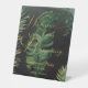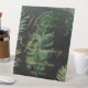 Una elegante invitación a una boda tropical pintada con acuarela pintada con un impresionante lavabo de acuarela negra con hojas de palma verdes pintadas de manera exquisita y acentos dorados brillantes. Una animada caligrafía de guión de swash dorado anuncia los detalles de su boda.