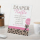 Pantalla de Raffle Leopard & Pink Baby Shower Diaper. Exhibir para que sus invitados entreguen sus tarjetas de raffle de pañales junto con su paquete de pañales para la oportunidad de ganar un premio!
