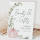 ¡Bienvenidos a un mundo caprichoso donde las calabazas acuáticas le dan un toque de magia otoñal! Este adorable Rótulo peatonal Baby Shower Fall Little Pumpkin es una manera encantadora de guiar a los huéspedes hacia los libros y regalos. Una combinación perfecta de encanto rústico y diseño de moda, son suaves tonos pastel y la bonita temática de "Pequeña Calabaza" hará que tu decoración de ducha sea absolutamente inolvidable.