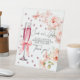 Un elegante signo de ducha de novia con perlas rosadas polvorientas, rosas de color, mariposas y un vaso de prosecco. Puede personalizar esto con su propio mensaje.