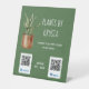 Moderno y elegante opción de pago de código QR, símbolo de pedestal para su tienda de flores, expo de casa o cabina de mercado de los granjeros. Agregue el código qr de su personalizado y los detalles de la compañía.