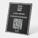 Logotipo de negocios negro moderno personalizado | Menú QR Rótulo Pedestal. Fantástico personalizable a su gusto, sólo tiene que rellenar la URL de su sitio web de negocios y se generará el código QR para usted. Añade tu lema de empresa.