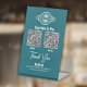 Crea tu propio signo de pago sin contacto personalizado con nuestra plantilla de envío de logotipos limpia y moderna. Simplemente haga clic en 'personalizar este diseño' para cargar el logotipo o escudo de su empresa, el nombre de la empresa o el sitio web y tendrá su propio signo de marca de personalizado para que los clientes puedan escanear rápidamente al pagar. Simplemente haga clic en 'personalizar este diseño' para cargar el logotipo de su empresa, las opciones de la aplicación de pago para los códigos QR, los manejos de medios sociales y la dirección web. Una solución rápida y fácil para todo tipo de negocios, perfecta tanto si es un comerciante de mercado, una tienda emergente, como un bistró tradicional, bar, sándwich o cafetería. Disponible en una gama de colores de fondo. Para mayor flexibilidad, puede cambiar fácilmente el color de fondo, el color del texto y el estilo del texto en la Herramienta de diseño de Zazzle, simplemente pulse "editar usando la herramienta de diseño". ¡Coincide con los colores de su marca exactamente para el signo perfecto!