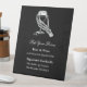 Direct your guests to the spirits with this stylish "Pick Your Poison" wedding bar menu. This self-standing pedestal sign features a stark black background and a crisp white sketch of a skeletal hand clutching a wine glass. It provides the perfect layout to customize and display your drink options, including beer, wine, and "His and Hers" signature cocktails. Ideal for Halloween nuptials, gothic receptions, or any couple who loves a touch of dark humor with their drinks.